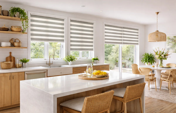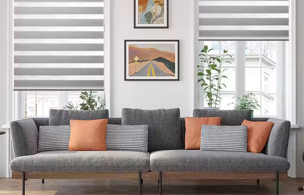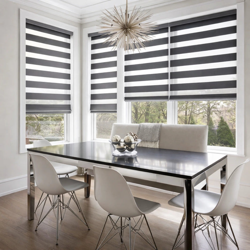 Zebra blinds combine alternating fabric layers that allow you to easily adjust light and privacy throughout the day.